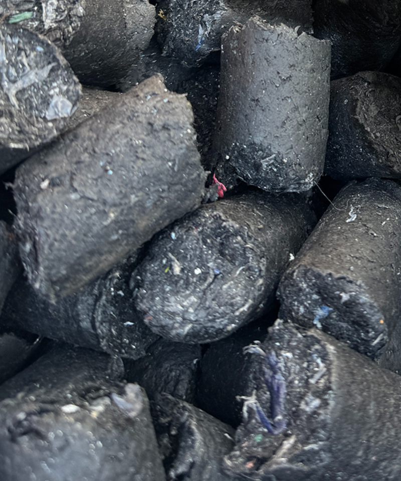 1度細かくした廃棄物を2軸高速粉砕機を使用して、また更に、細かくなるように処理を進めていきます。2度の破砕にて細かくすることで、その後に控える圧縮加工まで品質を落とすことなく作業が進むように、入念に行っていきます。リサイクル率を高めることは、低コストで再資源化が進むように徹底しています。